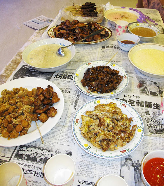 It's great to gather all the good food in town and FEAST!!! Hehe.. We went to buy the yummy deep-fried chicken pieces and chicken butts at Pisang Road, Han's BBQ Honey Chicken at Jalan Song. Wanted to get ourselves the sweet and spicy chicken wings from Matang, but unfortunately it was closed. Fanie got the Cha Kueh from Kenyalang Market, whereas Joe and Ying Ting bought Hui Sing's delicious pork satay and Ice Kacang. This is why our diet plans always fail. =.=